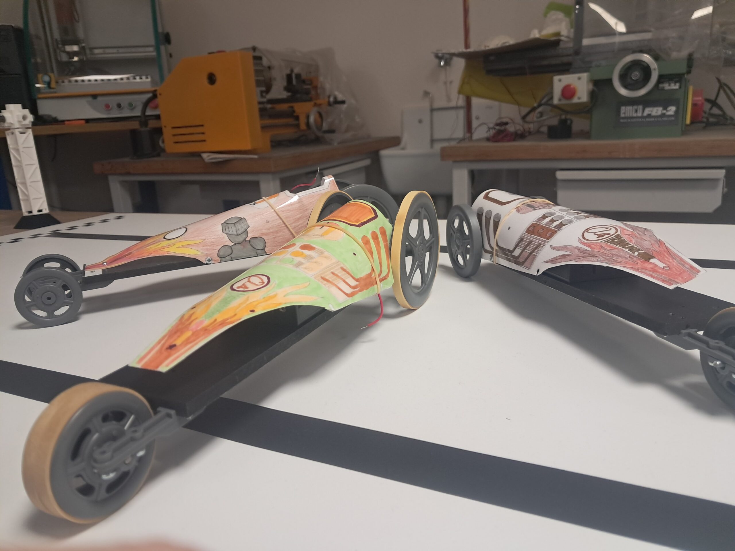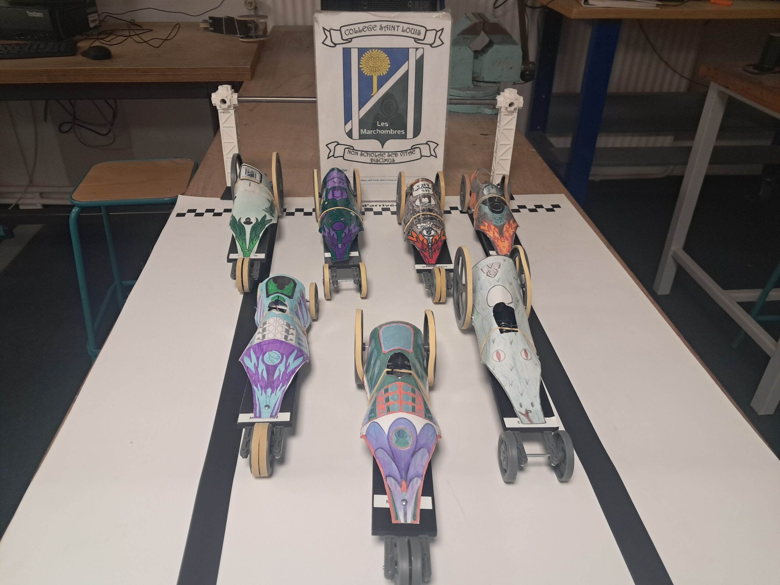 Avant le grand jour, les Ă©lĂšves effectuent les derniers ajustements : vĂ©rification des roues, alignement, tests de lancement⊠Rien nâest laissĂ© au hasard pour maximiser les performances.
