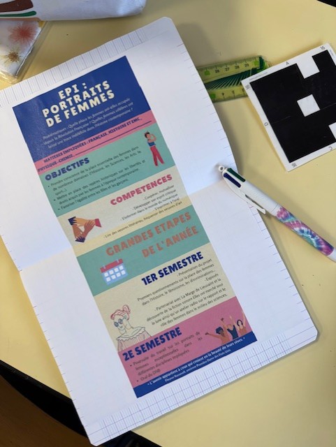 Cette année, la classe de 3e3 participe à un Enseignement Pratique Interdisciplinaire (EPI) mené conjointement par Mme Olivier (Histoire-Géographie) et Mme Petitcolin (Français), et soutenu par plusieurs professeurs de différentes disciplines. Ce projet a pour objectif de renforcer la visibilité des femmes dans l’histoire, les sciences, les arts et la société, tout en développant l’esprit critique et les compétences orales des élèves.