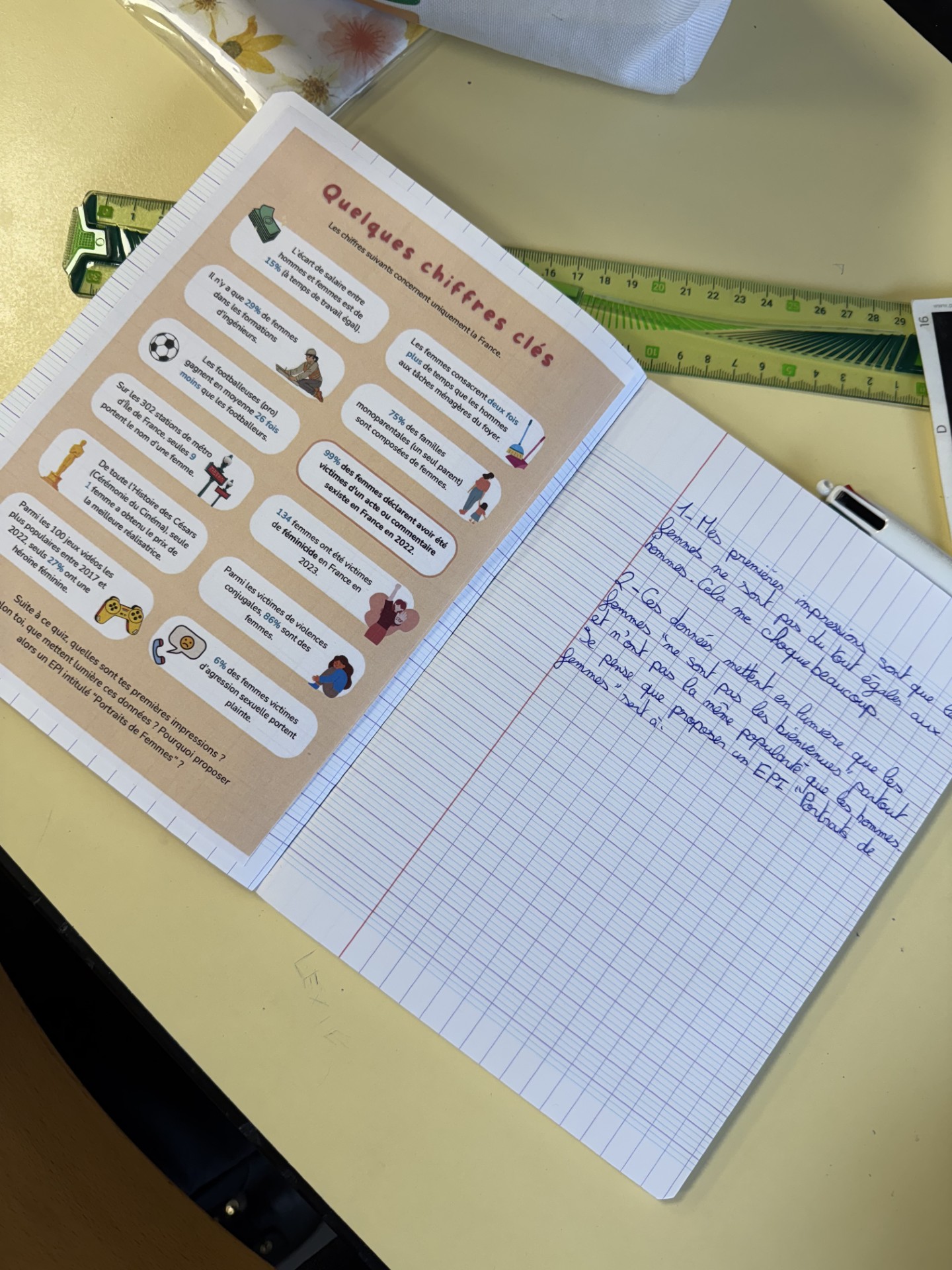 Par binômes, les élèves ont choisi une femme marquante — scientifique, artiste, militante, sportive ou autre — afin de préparer un exposé présentant son parcours et les raisons pour lesquelles elle mérite d’être mieux connue.