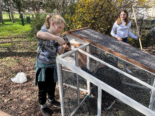 - Les élèves du club POTAGEO assurent l’entretien du poulailler pendant les récréations et la pause méridienne du lundi.